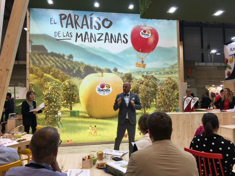 MelaValVenosta_FruitAttraction_3El Paraíso de las manzanas” sarà il leitmotiv della comunicazione in Spagna, come ha illustrato invece il direttore Marketing Benjamin Laimer. “Microclima ideale, passione, l'essere in una regione alpina ideale per la coltivazione delle mele nonché il modello di agricoltura in armonia con la natura che ci contraddistingue sono i quattro pilastri che ben rappresentano la filosofia di Mela Val Venosta”. Una nuova creatività dal tono emozionale che vede delle miniature che ricreano la vita nei campi della Val Venosta, abbinate a fotografie panoramiche, sarà protagonista di una campagna digitale e televisiva che comunicherà il posizionamento del marchio presentato in Fruit Attraction durante la stagione in Spagna. Si saranno azioni promozionali nei mercati, con incentivi per grossisti, fruttivendoli e clienti finali, e inoltre, ha annunciato il direttore Marketing, ci sarà una sorpresa, un'azione non convenzionale che riguarderà diverse città “e con cui vogliamo continuare a comunicare questo nuovo posizionamento”.