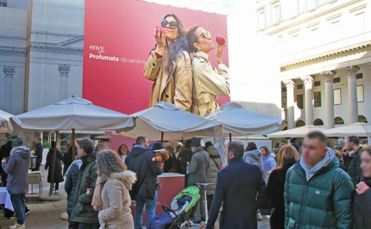 L’iniziativa si è svolta nelle settimane scorse in piazza San Carlo a Milano. Grazie a uno speciale sampling e ad un enorme maxi-ledwall allestito in piazza, i passanti hanno assaggiato la mela e sono stati immortalati nelle loro reazioni di meraviglia al gusto straordinario di envy. Le loro foto sono diventati i soggetti della coinvolgente pubblicità proiettata sul megaschermo.