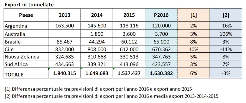 Dai dati dei programmi di esportazione si rileva come i quantitativi destinati all'export saranno superiori del 6% rispetto all’anno scorso ma non avranno come destinazioni preferenziali i Paesi europei a causa della forte produzione locale, del tasso di cambio sfavorevole con l’Euro e per il perdurare dell’embargo russo.