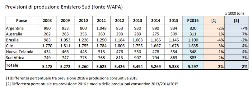 La produzione di mele nei paesi dell’Emisfero Sud dovrebbe calare del 2% rispetto alla scorsa stagione con un volume complessivo pari a 5.297.000 tonnellate. Le qualità è considerata generalmente buona (grandine in Argentina e calibri più piccoli in Sudafrica) e i primi arrivi in Europa sono previsti per metà-fine marzo.