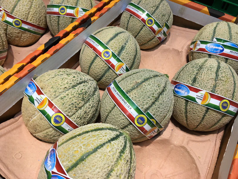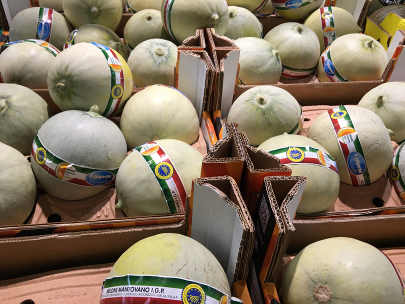 Si presentano con una fascetta ad hoc che riporta sia il logo del Consorzio Mantovano Igp che quello del’insegna il Gigante. “Una grande novità!” ci ha confermato Francesca Nadalini, nota produttrice del comprensorio del Melone Mantovano.