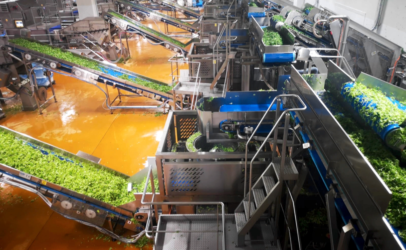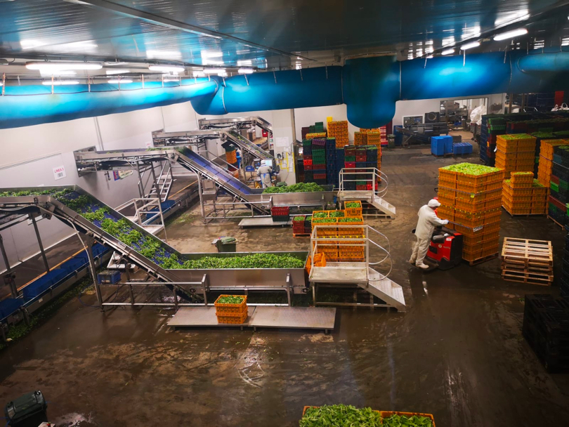 Acqua che a una costante temperatura di 4 gradi – la stessa temperatura a cui viene abbattuta e trasportata l’insalata dopo la raccolta – e priva di qualsiasi contaminazione, scorre in undici vasche che alimentano ben ventitré linee di produzione e permettono la cura e il trattamento dei sessantamila chili prodotti e confezionati quotidianamente a San Paolo, nella bergamasca.