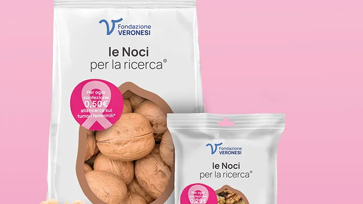 Per ogni confezione venduta all’insegna, Life devolverà 0,50 euro per le noci in guscio e 0,25 euro per le noci sgusciate, in favore di Fondazione Veronesi per sostenere la ricerca scientifica sui tumori tipicamente femminili, ossia al seno, utero e ovaio.