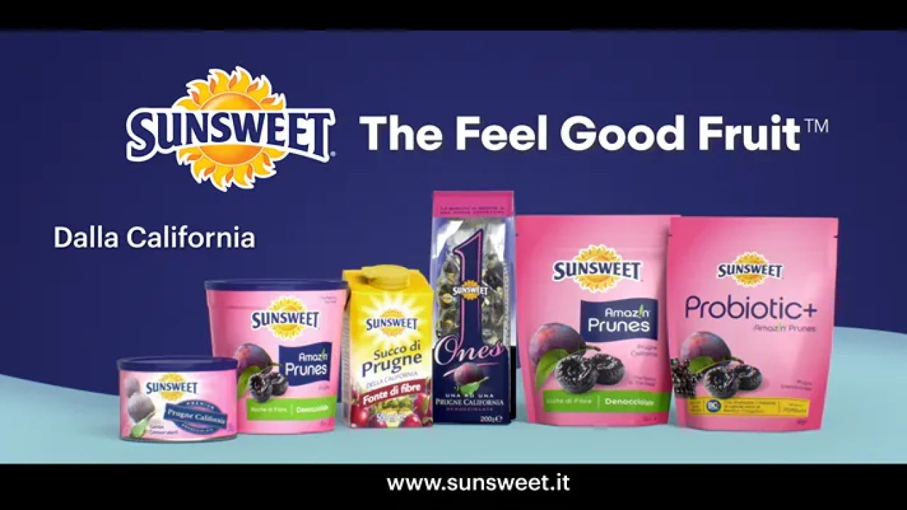 Il pay-off internazionale The feel good fruit rimane al centro della comunicazione, sottolineando le proprietà uniche e distintive di questi frutti. Accanto alla campagna televisiva, Sunsweet ha affidato la comunicazione social a una nuova agenzia, incaricata di rinnovare l’immagine del brand e avvicinare le nuove generazioni.
