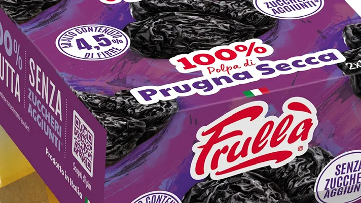 Frullà amplia la propria offerta con il lancio di 100% prugna secca in vaschetta bi-pack (2x100 g), un formato pratico che rende ancora più facile il consumo di questo frutto eccezionale. Dopo il successo del formato doypack da 90 grammi, la purea di prugna secca, ottenuta esclusivamente da prugne fresche di origine italiana accuratamente selezionate e, una volta essiccate, trasformate in polpa pronta al consumo senza l’aggiunta di zuccheri, aromi o conservanti, è ora disponibile anche nel pratico formato vaschetta in alluminio completamente riciclabile.