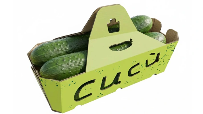L'unità di vendita per Cucù rappresenta il cuore del progetto candidato nella categoria unità di vendita. Il nome richiama già l'ironia e la freschezza del prodotto, mentre la scelta del cartone al 100% risponde a una visione precisa di futuro per l'ortofrutta. Eliminando completamente le plastiche dalla vendita al dettaglio, Op Ioppì propone un modello replicabile per tutta la categoria cetrioli e oltre.