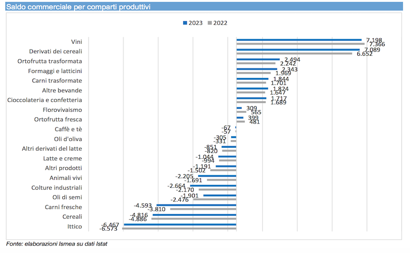 Il 2023 è stato un anno positivo per il commercio agroalimentare italiano. A dirlo è Ismea, che nell’ultimo report sulla bilancia commerciale 2023, rileva: le esportazioni mettono a segno un nuovo record oltrepassando quota 64 miliardi (+5,7% vs 2022), mentre l’aumento delle importazioni è più contenuto: da 61,7 a poco più di 65 miliardi, il che significa +5,4 per cento.