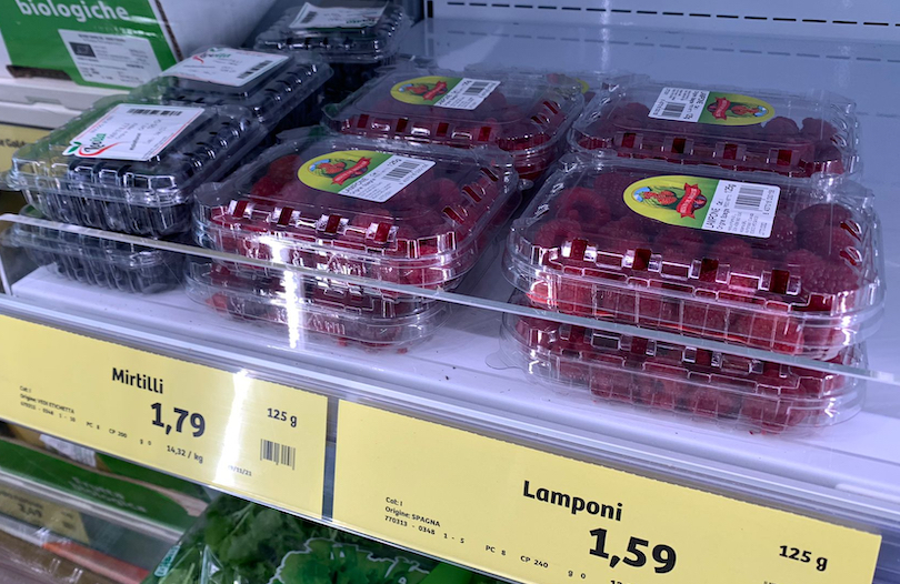 Le rilevazioni dell'Osservatorio Piccoli frutti oggi, 15 dicembre, hanno interessato la zona urbana di Padova. In particolare, sono stati visitati 19 punti di vendita di 19 insegne appartenenti a 12 gruppi della grande distribuzione organizzata (Gdo). Le insegne in questione sono: Aldi, Alì, Alìper, Conad City, Conad Superstore, Coop, Despar, Eurospar, Famila, iN's, Iper Spar, Iperlando, Lidl, MD, Pam, Prix, Rossetto, Spazio Conad, Super A&O. E c'è chi non ha i berries in assortimento, si tratta dell'insegna Spak.