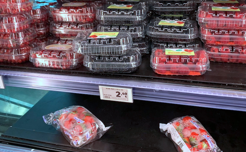 Negli scaffali, poi, c’è poco prodotto e spesso è anche vecchio. Fatta eccezione per i primi mirtilli peruviani, ancora in quantitativi limitati.