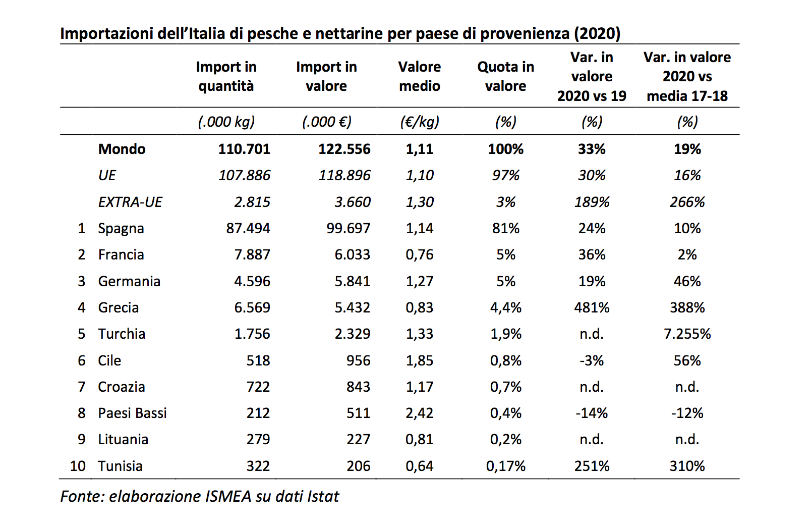 Decifrare l'andamento della stagione in corso non è facile, e myfruit.it lo aveva già rilevato qualche settimana fa. Anche secondo il report di Ismea, infatti, sono in atto alcuni fenomeni da analizzare. Il primo, riguarda l'import: nonostante la debolezza della domanda interna, la scarsa produzione nazionale spinge le importazioni che già nel 2020 hanno raggiunto il livello record di 122 milioni di chilogrammi, facendo addirittura intravedere per il 2021 un ulteriore innalzamento dei volumi in entrata.