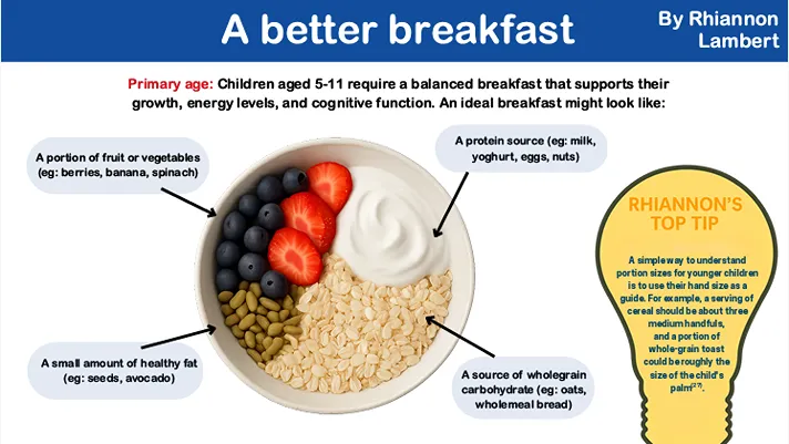 Secondo la ricerca, i bambini che fanno colazione regolarmente hanno maggiori probabilità di mantenere una composizione corporea più sana, con studi che evidenziano una relazione protettiva tra il consumo della prima colazione e il rischio di sovrappeso e obesità.