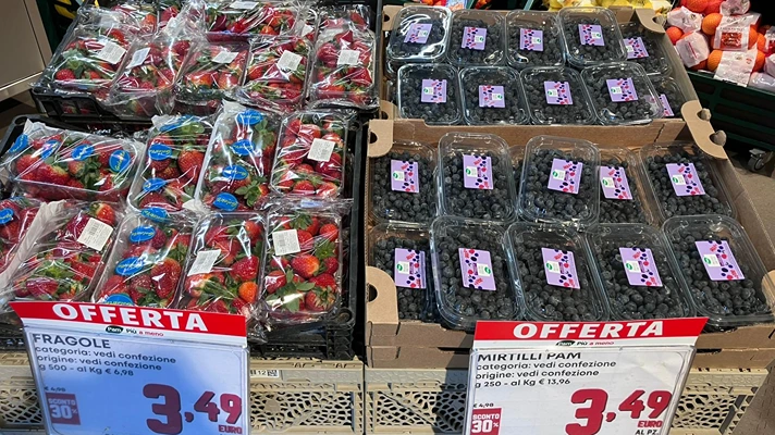Ecco la sintesi del nuovo appuntamento con l'Osservatorio Piccoli frutti. Questa settimana, oggi 18 febbraio 2026 per la precisione, la rilevazione si è svolta nella zona urbana di Trento e ha interessato 17 punti di vendita di 16 insegne appartenenti a 11 gruppi della grande distribuzione organizzata. Nello specifico: Aldi, Conad, Conad Margherita, Coop, Despar, Eurospar, Eurospesa, Eurospin, Famiglia Cooperativa, iperPoli, Lidl, MD, MiniPoli, Orvea, Pam, Poli, Prix.