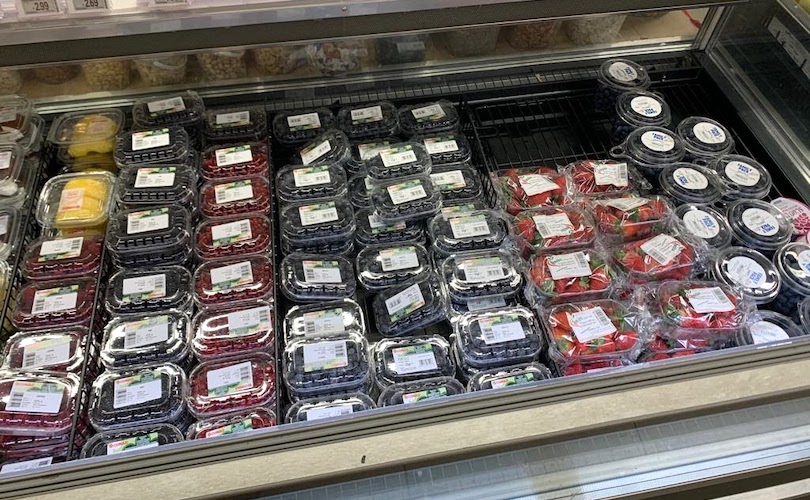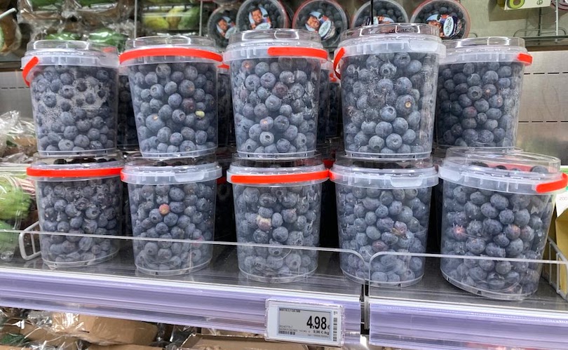 Gli scaffali sono tendenzialmente pieni e si nota la presenza di vari formati per i mirtilli, fino a 500 grammi. La qualità del mirtillo è buona, meno quella del lampone.