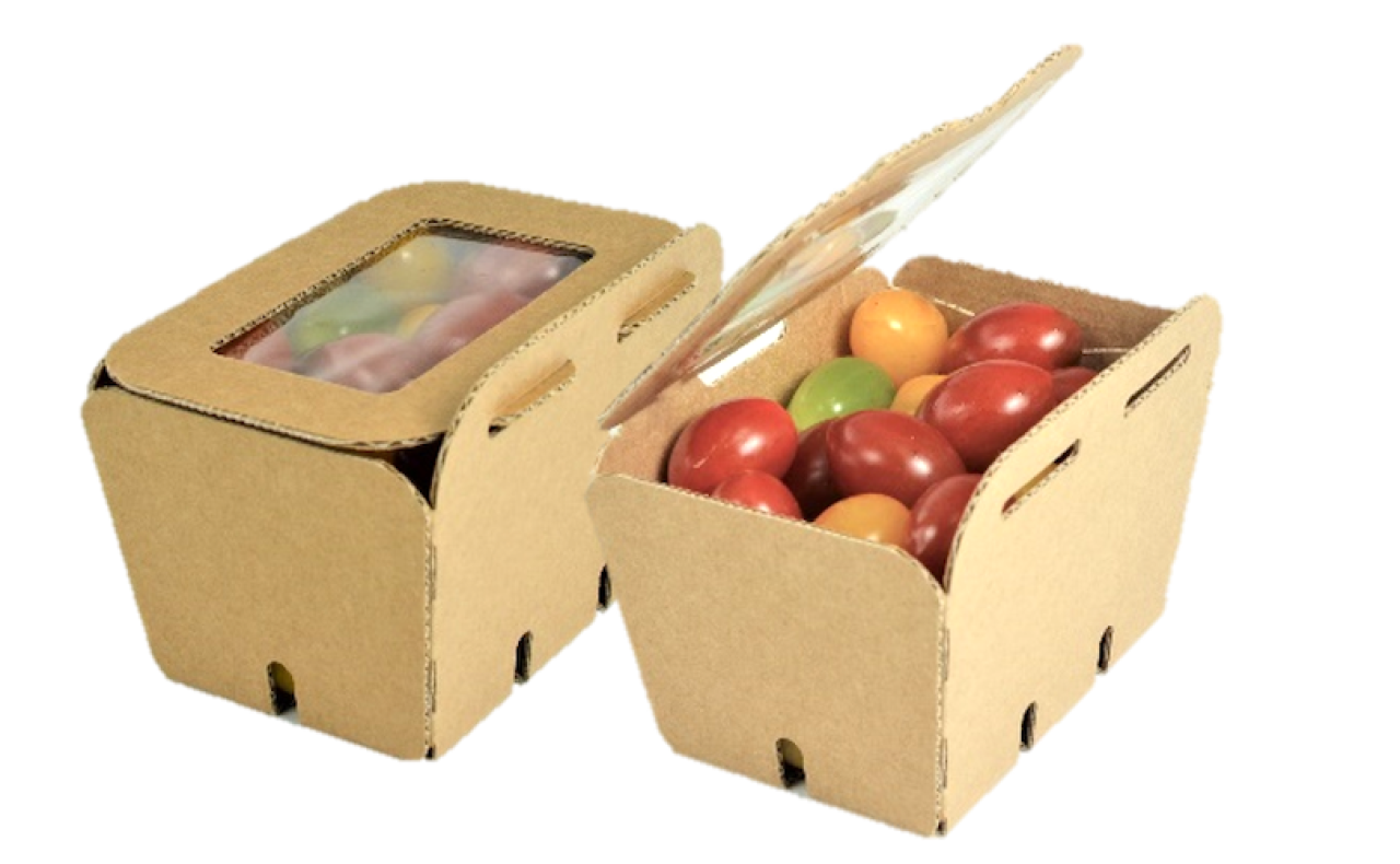 Il CartonShell® (nella foto di apertura) è l’alternativa in cartone microonda al noto clamshell in rPet. Questo modello brevettato, oltre ad avere una forte resistenza all’umidità e particolari caratteristiche di robustezza strutturale, si presta perfettamente ai processi di confezionamento automatizzati in linea di riempimento e chiusura standard. Cartonshell® è perfettamente impilabile e si adatta alle dimensioni delle classiche cassette in cartone, Europool e cassette standard Ifco.
