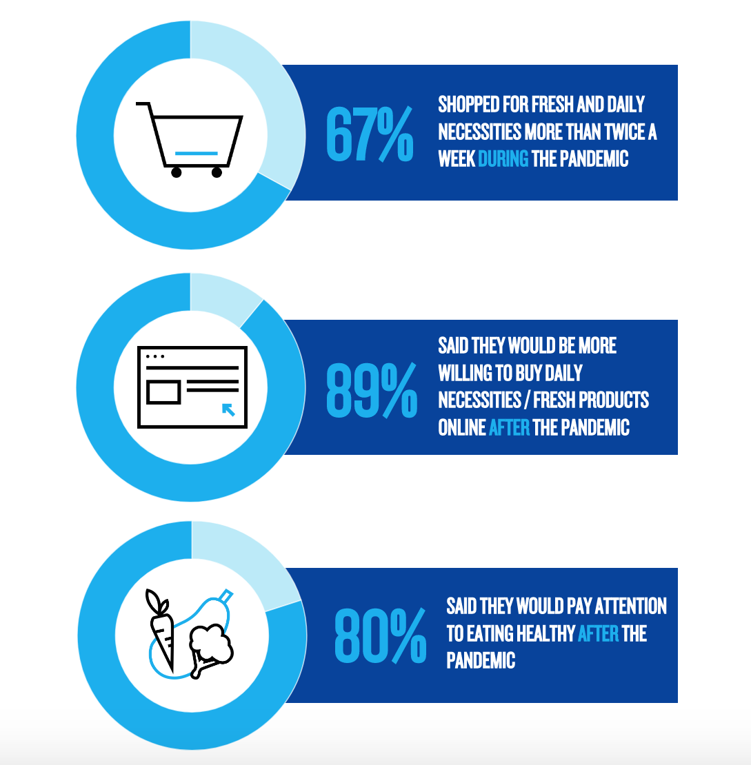 abitudini alimentari in AsiaDunque, per lo meno in Asia, sta emergendo una mentalità “homebody”, casalinga. In questo scenario, sempre secondo lo studio Nilsen, sono due i fattori che influenzeranno sempre più la spesa e le abitudini di acquisto dei consumatori: la salute e la tecnologia. Nella Cina continentale, infatti, il 70% degli intervistati ha acquistato durante la quarantena beni di prima necessità e prodotti freschi più di due volte a settimana e, da quanto dichiarato, continuerà a farlo anche ad emergenza conclusa. Inoltre, la quarantena ha ulteriormente potenziato le abitudini di acquisto online dei consumatori, tanto che l'89% dei consumatori dichiara di essere più disposto ad acquistare online prodotti di prima necessità e prodotti freschi, anche una volta che sarà terminata la pandemia. Inoltre, l'80% ha dichiarato che presterà maggiore attenzione a un'alimentazione sana, anche dopo la fine dell'emergenza coronavirus.