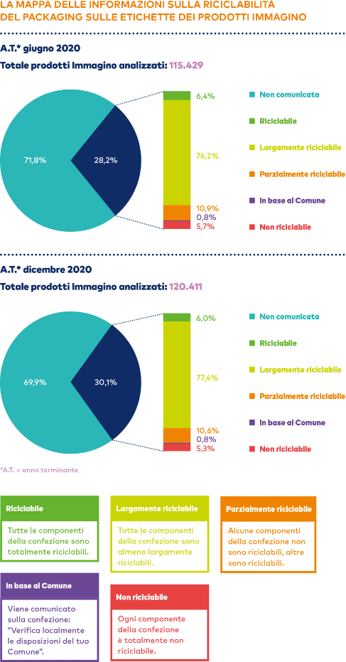 “È una confezione riciclabile?”: quale consumatore non si è posto questa domanda nel momento in cui si è trovato a mettere nella raccolta differenziata la confezione di un prodotto alimentare o di un detersivo? La risposta arriva dagli oltre 36mila prodotti di largo consumo che presentano in etichetta le indicazioni sul livello di riciclabilità del packaging. Il dato emerge nell’ultima edizione dell’Osservatorio Immagino di GS1 Italy, che ha rilevato le informazioni presenti sulle etichette di oltre 120 mila prodotti, che concorrono all’82,6% del fatturato di supermercati e ipermercati in Italia.