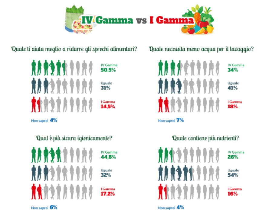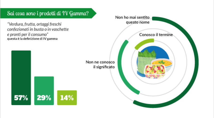 Il nome, però, “IV gamma”, non è facilmente associabile a questa definizione. Sommando coloro che non hanno mai sentito questo nome e quelli che invece lo hanno sentito, ma non ne conoscono il significato, si arriva all’85% del campione intervistato (1000 persone tra i 18 e i 75 anni).