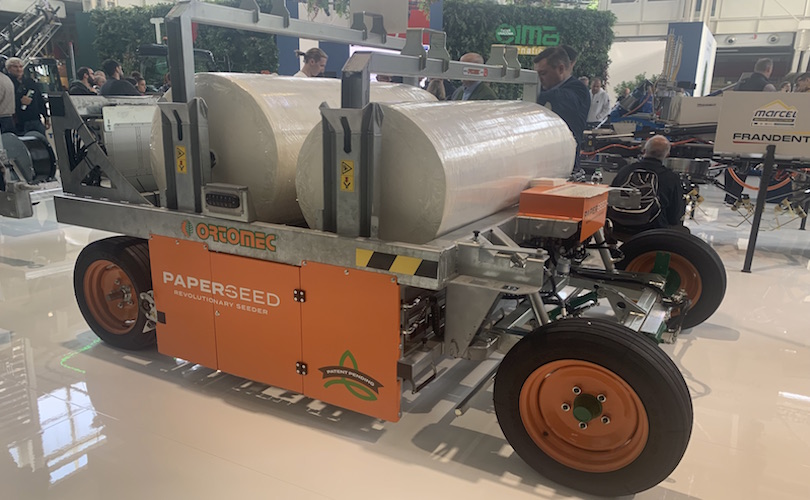 Paper-seed è tra le novità tecniche dell'edizione 2022 di Eima per via dell'innovazione che consiste nel consentire, in un unico passaggio, il posizionamento di un primo strato pacciamante di carta, la semina, e infine il posizionamento di un secondo strato pacciamante.