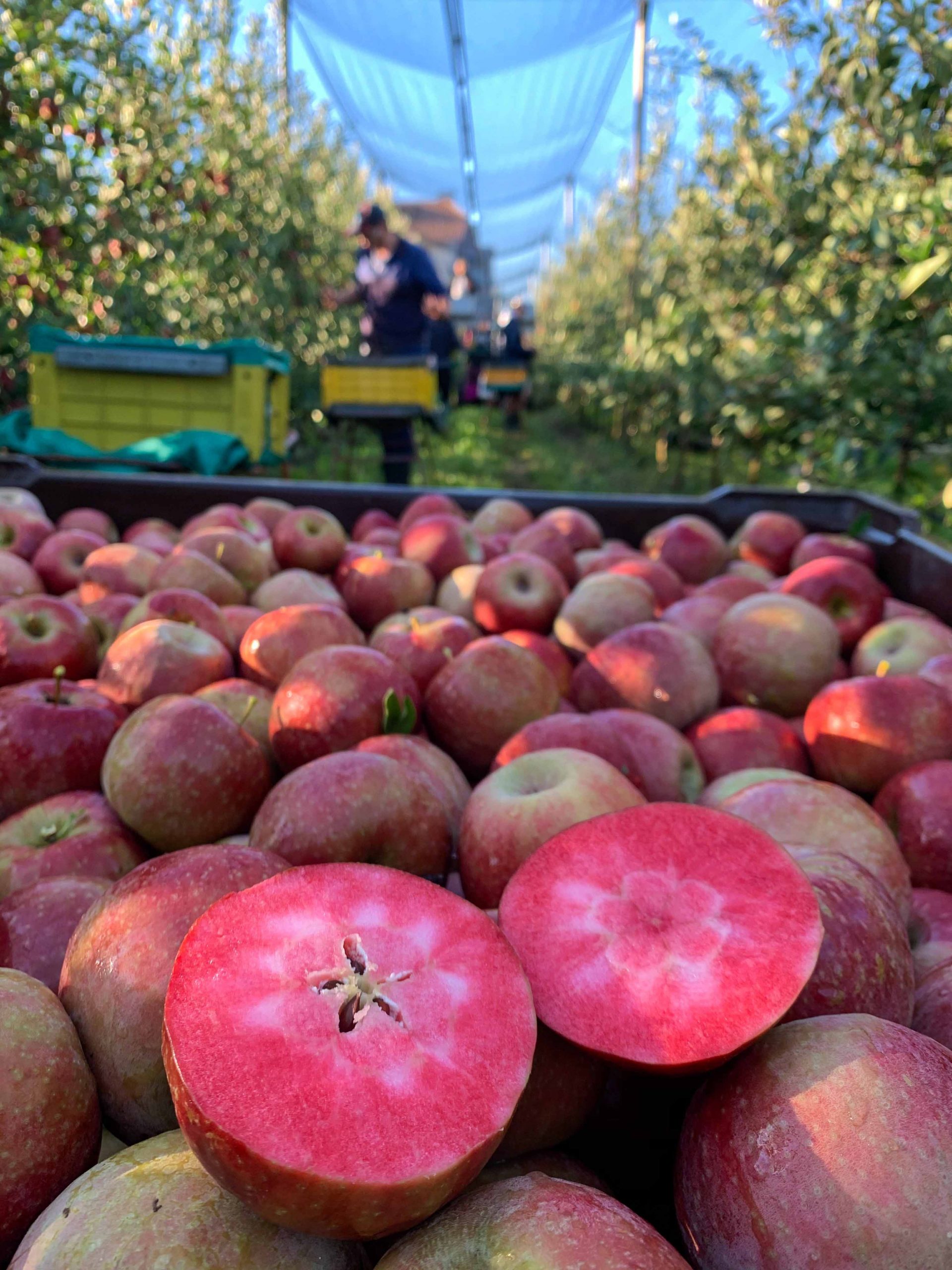 Jurgen Braun, co-titolare di Kiku Variety Management, ditta socia di Red Moon, incaricata delle attività di marketing, aggiunge: “Tremila tonnellate ci permettono di fare un bel programma di sviluppo. Stiamo già spedendo i primi campioni di prodotto in Italia, Germania, Benelux e Paesi Scandinavi, non solo ai buyer della Gdo, ma anche a realtà distributive più piccole, di nicchia come la nostra mela. Le mele a polpa rossa polarizzano tanto, o le ami o le odi. Ecco, noi cerchiamo di crescere con chi le ama e sposa il progetto”.