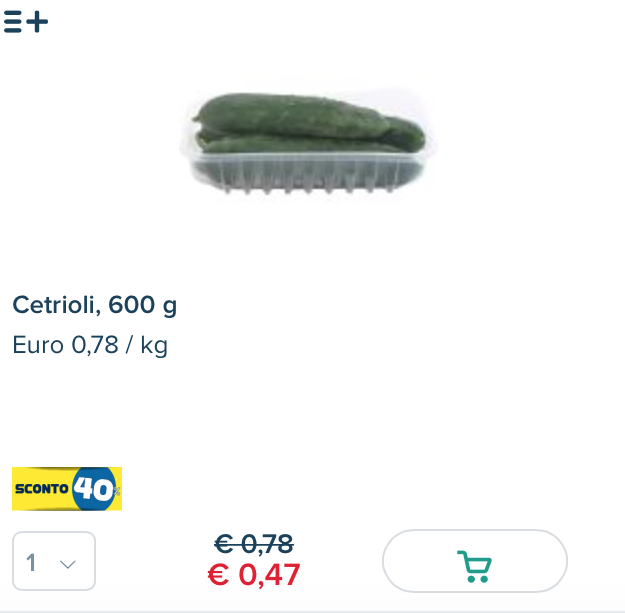 Sugli scaffali virtuali di Esselunga, i prodotti arrivano quindi direttamente a casa, sono scontati del 40% i cetrioli – la vaschetta da 600 grammi è in vendita a 0,47 euro – e del 30% la zucca Napoletana: con 0,69 euro se ne acquistano 700 grammi. Prezzi corti anche per i peperoncini dolci: la confezione da 400 grammi in questi giorni è in vendita a 0,79 euro, 30 in meno rispetto al prezzo originale di 1,07 euro.