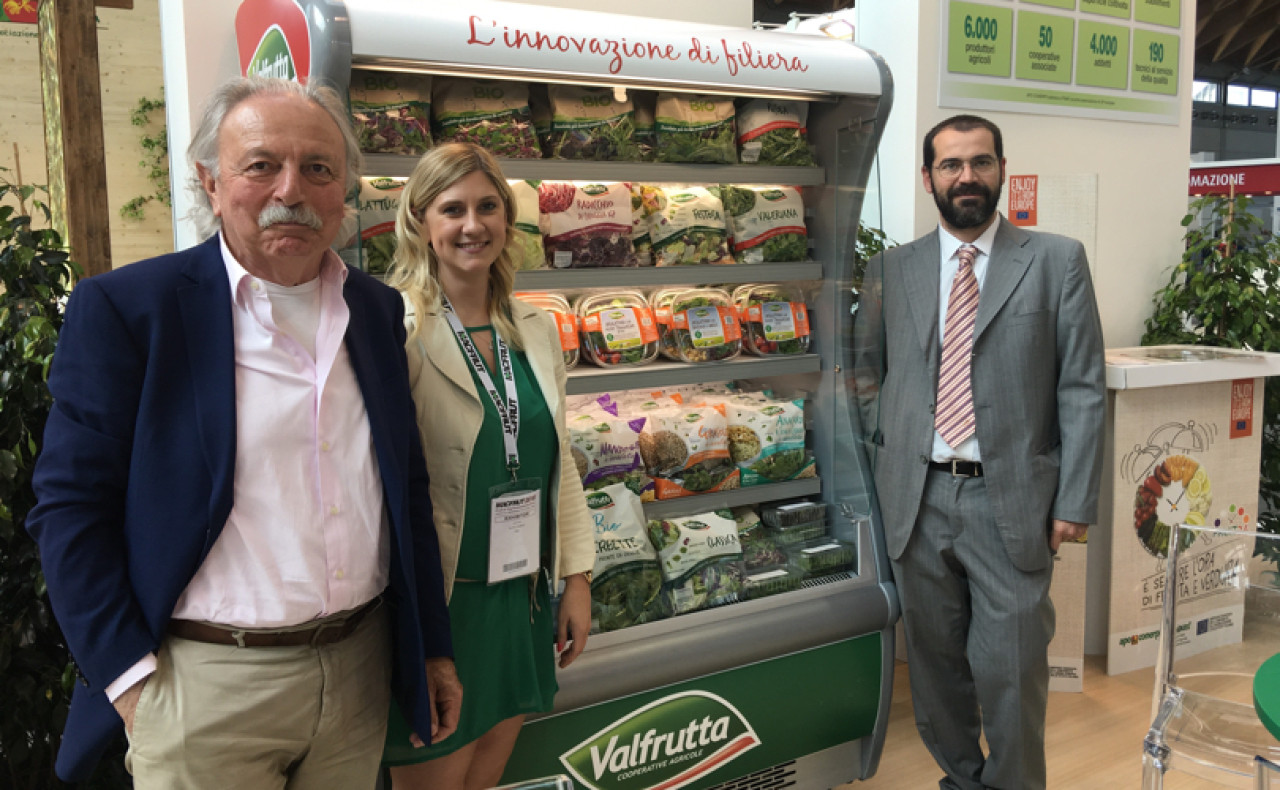 A Macfrut, dove l'azienda era presente all'interno dello stand di Alegra – Cultiva sviluppa in esclusiva per Valfrutta Fresco le referenze di IV° gamma – in mostra tutte le ultime novità che ci sono state presentate da due nuovi collaboratori entrati a far parte dell'azienda veneta da non molto tempo: Silvia Tommasi, coordinatrice marketing e comunicazione, e Matteo Andrea Benatti, project manager. È cambiata la grafica di alcune confezioni di prodotto (radicchio di Chioggia IGP, lattughino, insalata iceberg), è arrivata la linea dei “Pronti da cuocere” bio, per ora con la ricetta che coniuga spinaci ed erette, “poi in autunno arriveranno nuove referenze” ci spiegano, infine le insalatone arricchite con prodotti 100% italiani, dopo il test di Berlino a Fruit Logistica, sono passate al peso di 115 grammi e sono pronte per il mercato con le referenze che vedono le olive taggiasche e pomodorini da una parte e nocciole del Piemonte e miele dall'altra, ma verranno rilanciate anche quelle con germogli misti e germogli di ravanello Daikon in insalata.