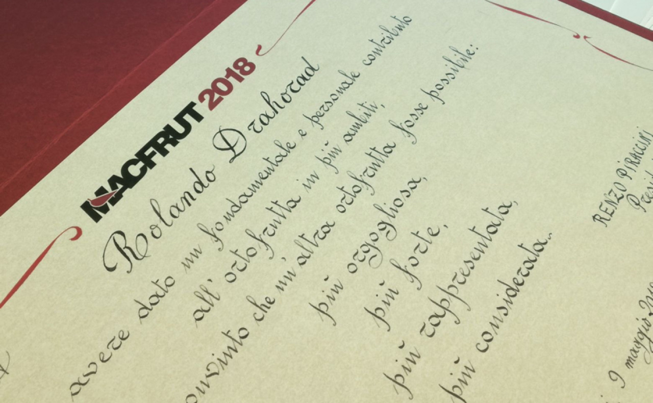Con questa motivazione ieri, durante l'inaugurazione della 35esima edizione di Macfrut, è stato conferito a Rolando Drahorad il Premio Macfrut 2018. A consegnarlo alla moglie Christine Drahorad e al figlio Thomas Drahorad è stato il presidente di Macfrut Renzo Piraccini.