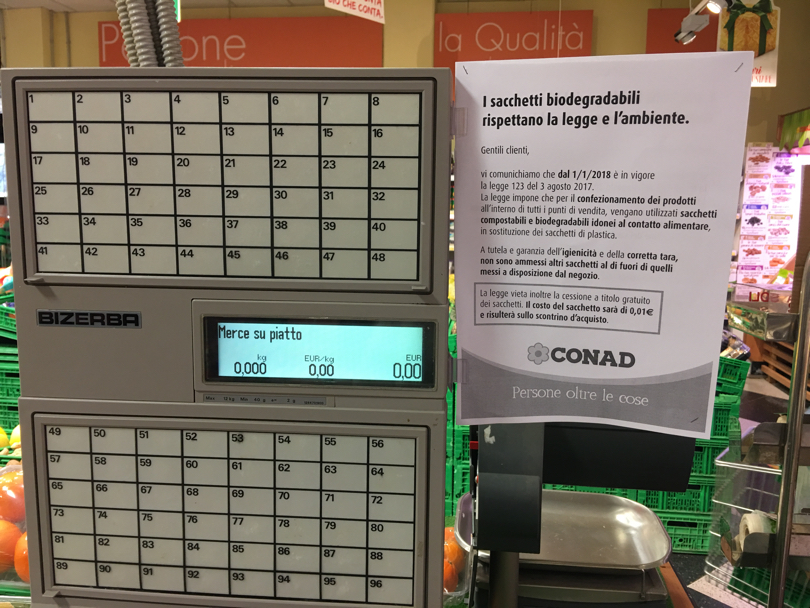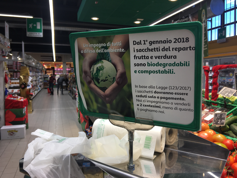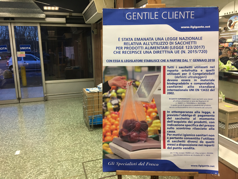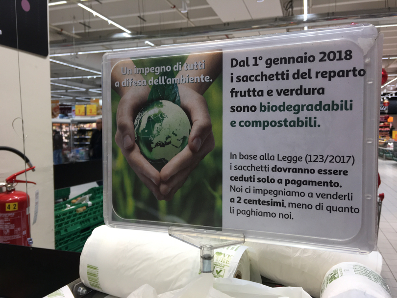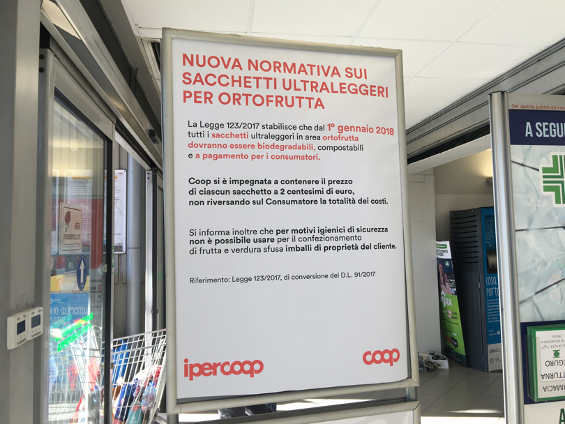 C’è chi ha optato per una comunicazione super essenziale senza dare troppe spiegazioni, chi invece ha illustrato con dovizia di particolari sin dall’ingresso nel proprio punto vendita la principale novità di inizio 2018, vale a dire l’introduzione, a pagamento, dei sacchetti biodegradabili nel reparto ortofrutta.
