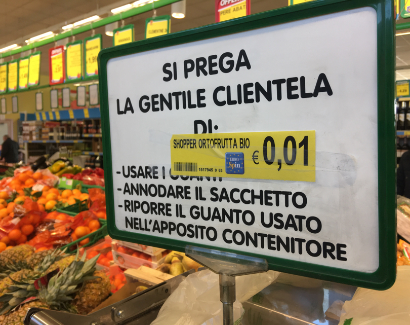 Quasi tutti, oltre a citare i riferimenti normativi (europei e italiani), hanno sottolineato l’obbligatorietà del pagamento, anche se con modalità differenti: chi solo nel reparto ortofrutta vicino alla bilancia, chi già all’ingresso, chi anche alla cassa al momento del pagamento.