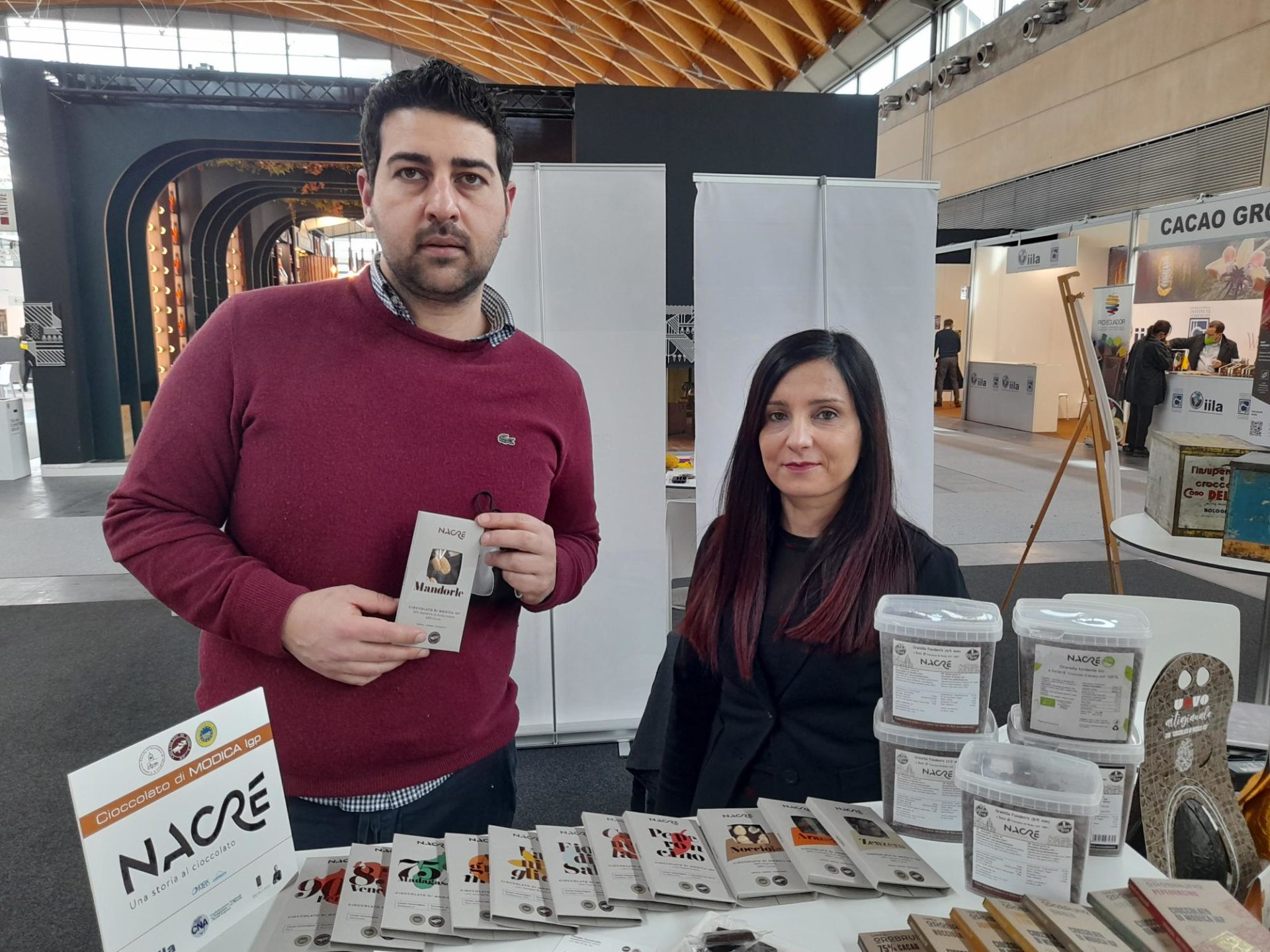 Frutta secca di elevata qualità è protagonista anche nel Cioccolato di Modica Igp prodotto dalla Nacré di Modica (Ragusa), che tra i prodotti presentati a Sigep 2022 ha portato tre linee di tavolette: la Nacré (top di gamma, che comprende anche le barrette con 60% di cacao e il 20% di Mandorla di Avola e 60% di cacao e 20% di nocciole), Oro Bruno (con cacao monorigine dell’Ecuador) e Contessa Carossa.
