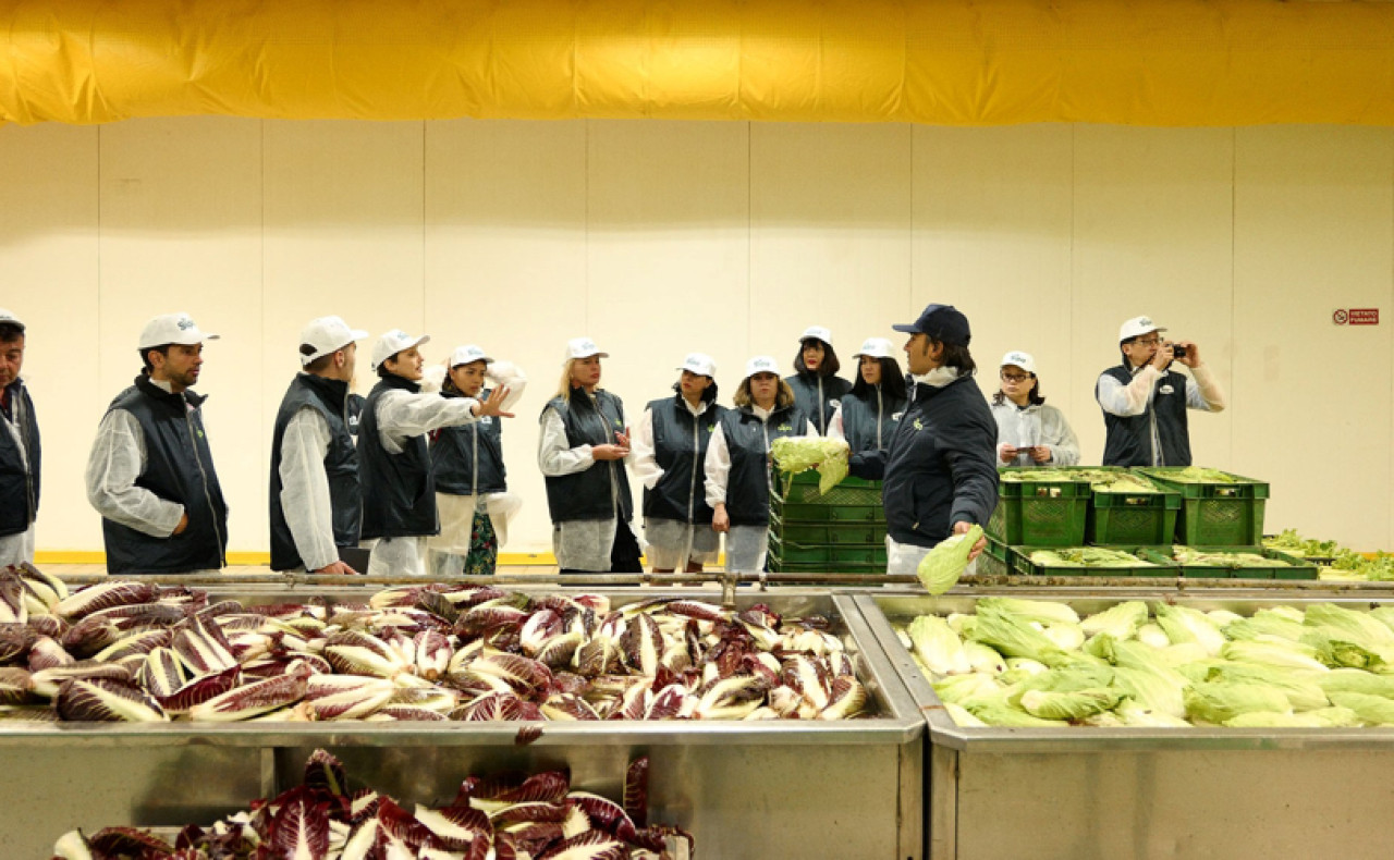 Dopo il tour nei campi è stato visitato lo stabilimento, per illustrare il processo di cernita, mondatura, lavaggio, asciugatura e il confezionamento dei prodotti pronti per essere spediti. Sono stati inoltre presentati i nuovi prodotti: la linea dei Pesti di verdure fresche e le insalate pronte con germogli Super Veggies.