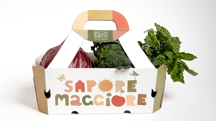 Op Solco Maggiore partecipa al Premio Best Fruit&Veg Box nella categoria unità di vendita per l'ortofrutta premium di Sapore Maggiore: un bauletto in cartone riciclabile da 2,5 kg che si adatta alla stagionalità dell'offerta.