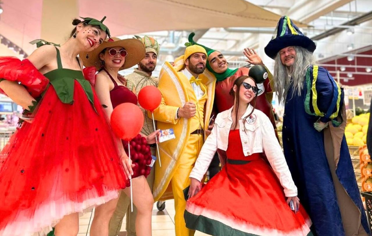 Il format resta quello consolidato: in ogni punto di vendita i performer che vestono i panni dei prodotti di stagione interagiscono con i clienti del supermercato e li intrattengono con un racconto spettacolare dell’ortofrutta. L’esperienza è arricchita da degustazioni dei prodotti protagonisti della giornata, fino al gran finale nel reparto ortofrutta, con un entusiasmante show musicale.