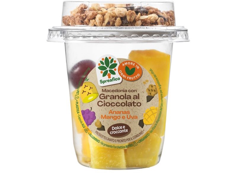 Dedicata a chi ama consumare frutta nelle pause di metà giornata, per gustare uno snack sano e gustoso. Questa linea è composta da due referenze: macedonia con granola proteica ed una con granola al cioccolato, concepita per incontrare i nuovi trend di consumo e abbracciare uno stile di vita per chi vuole coniugare salute e gusto.