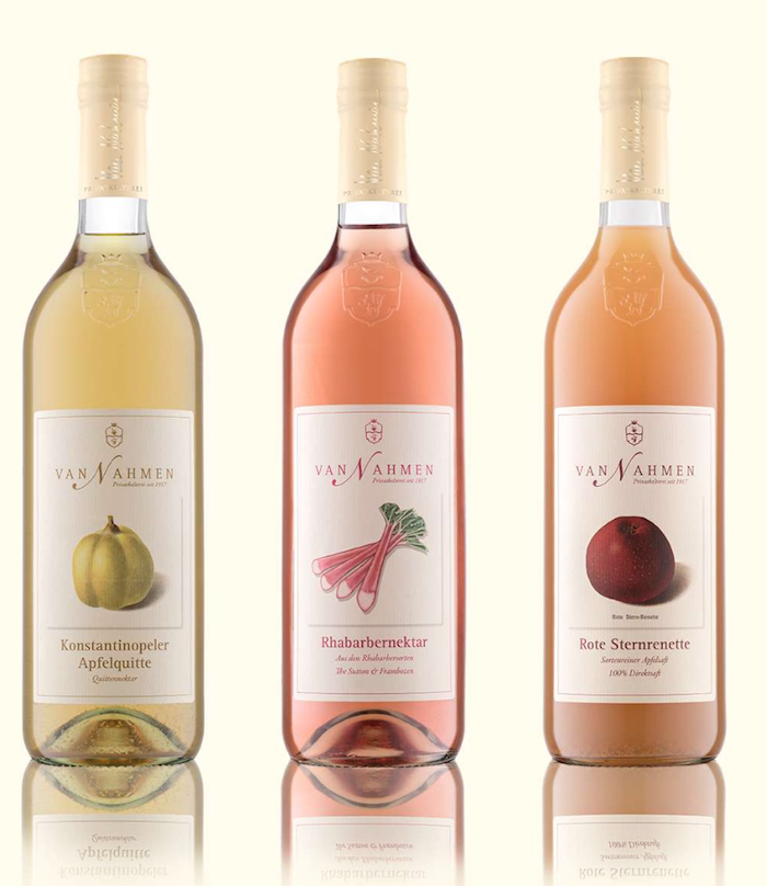 I succhi in questione sono prodotti di altissima qualità, venduti in bottiglie di vetro del tutto simili a quelle dei vini sia per la forma (alcuni per esempio scelgono la renana, altri la bordolese), sia per la capienza (quasi sempre da 0,75 litri), sia per il prezzo: costano anche 50 euro a bottiglia. Per citare alcuni esempi, sono destinati al canale Horeca i succhi dell’azienda austriaca Retter di Pöllau (Stiria): bottiglie identiche a quelle in cui si usa imbottigliare gli Chardonnay contengono succo di mirtillo rosso. Ciascuna bottiglia costa 48 euro e fa parte della linea “Sommelier”, destinata appunto all'alta ristorazione. Un altro esempio di aziende che producono succhi di frutta destinate agli stellati è quello della tedesca van Nahmen di Hamminkeln am Niederrhein (Renania Settentrionale-Vestfalia). In questo caso si tratta di i succhi monovarietali contenuti in bottiglie bordolesi da 0,75 o 0,25 millilitri che, a testimonianza del pregio, riportano sul retro l’annata. Esattamente come avviene per i vini, nei ristoranti i succhi di frutta vengono proposti a calice (circa 8-10 euro l'uno), oppure si può ordinare l’intera bottiglia.