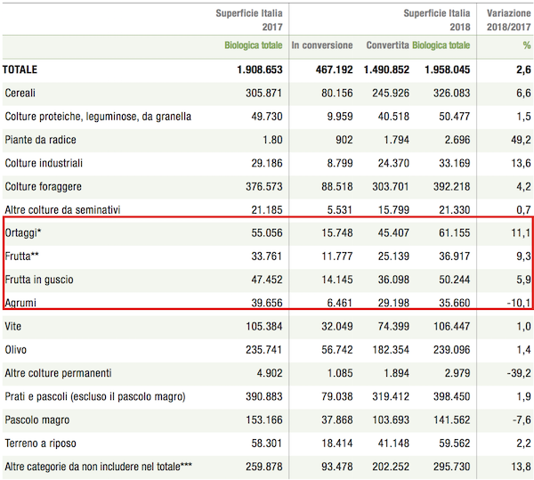 Secondo Ismea e Sinab, se si confrontano il 2017 con il 2018, nel settore ortofrutticolo bio emerge quanto segue: la frutta da zona temperata cresce del 10%, i piccoli frutti dell’11% e la frutta da zona subtropicale del 7%, mentre per gli agrumi si verifica una diminuzione del 10 per cento.