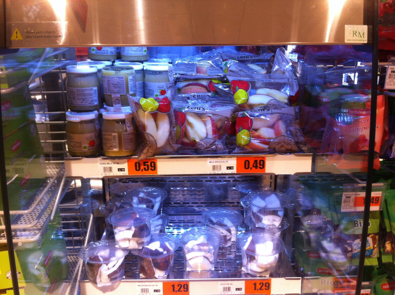 Dopo frutta secca e macedonie vicino alle casse, ora si passa anche alle mele di IV gamma Leni’s, marchio dell’azienda altoatesina Vog Products (sono state inserite anche le mousse, sempre a marchio Leni’s). L’insegna del gruppo Unes, quindi, continua a percorrere una strada, relegando i dolciumi nell’apposita corsia e puntando decisa sui temi del benessere e del salutismo e puntando su una posizione, quella delle avancasse, molto strategica, caratterizzata com’è dagli acquisti d’impulso. Una posizione, inoltre, sicuramente premiante anche per prodotti come le mele di IV gamma, nate proprio per essere consumate come uno snack e che all’interno del reparto ortofrutta faticano a trovare una loro precisa collocazione.