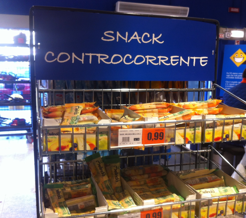 L’esperimento è partito nel punto vendita di Meda, in Brianza, ma molto probabilmente verrà esteso anche ad altri negozi a insegna U2. Gli “snack controcorrente”, posizionati nel negozio brianzolo in tre postazioni avancassa, oltre ai due prodotti Leni’s, comprendono confezioni di frutta secca e gli snack di Noberasco (più di 20 referenze), confezioni di mele disidratate, snack a base di mela a marchio Melinda (AD Chini), “l’ABC della merenda” (Parmareggio) e delle confezioni di cocco fresco già tagliate e pronte al consumo.