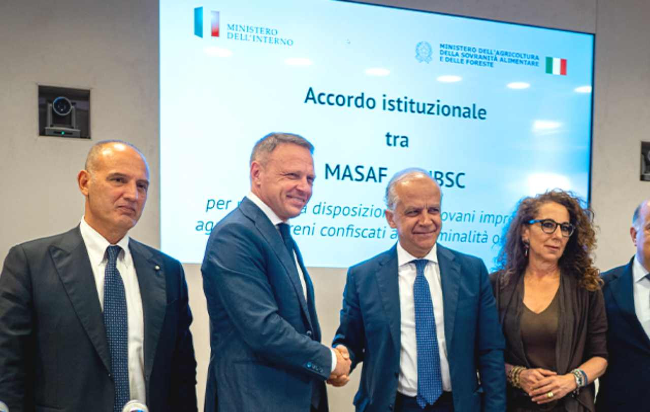 I ministri dell’Interno, Matteo Piantedosi, e dell’Agricoltura, della sovranità alimentare e delle foreste, Francesco Lollobrigida, hanno presenziato oggi al Viminale alla firma dell’accordo tra il Masaf e l’Agenzia nazionale per l’amministrazione e la destinazione dei beni sequestrati e confiscati alla criminalità organizzata, grazie al quale verranno messi a disposizione di giovani imprenditori agricoli i terreni sottratti alle mafie.