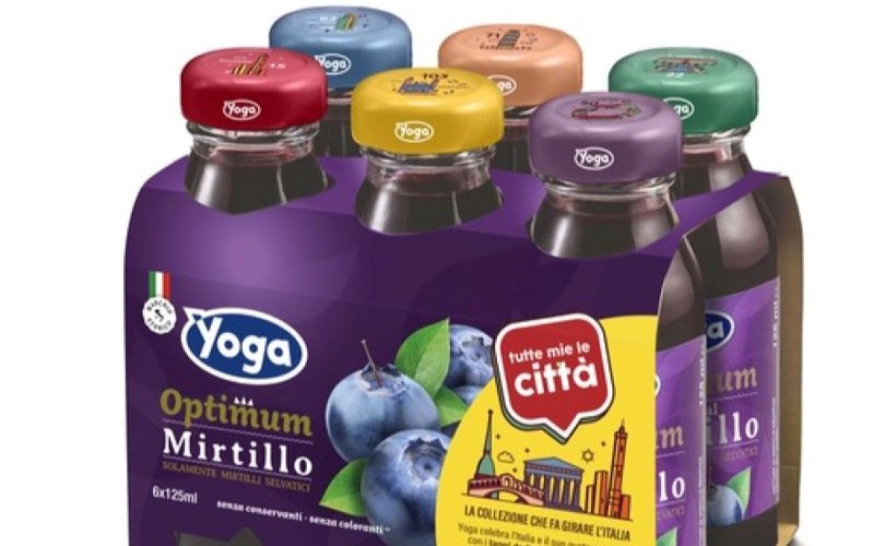 Per celebrare il riconoscimento di Yoga come marchio storico di interesse nazionale, la linea di succhi di frutta Yoga optimum in vetro da 125 ml promuove l’iniziativa “tutte mie le città”, con una raccolta capace di far esplorare l’Italia attraverso 107 iconici e colorati tappi illustrati tutti da collezionare, uno per ogni capoluogo italiano.
