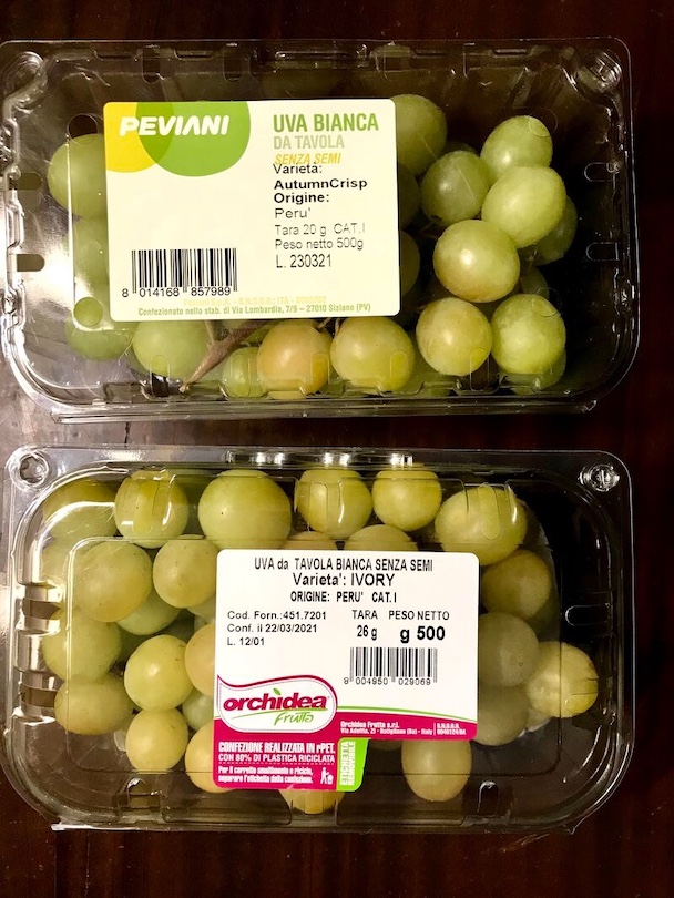 Un motivo in più per guardare bene le varietà in etichetta prima di acquistare l'uva da tavola. Ieri all'Esselunga di Modena c'era in vendita l'uva bianca seedless a 2,98 euro per 500 grammi.