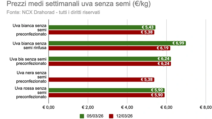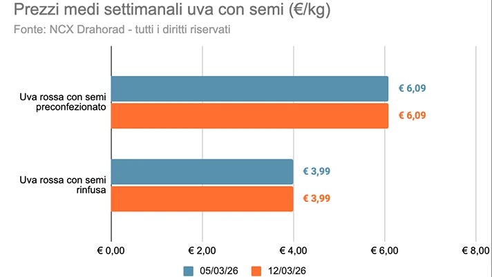 Uva con semi: prezzi uniformi e Red Globe al top
