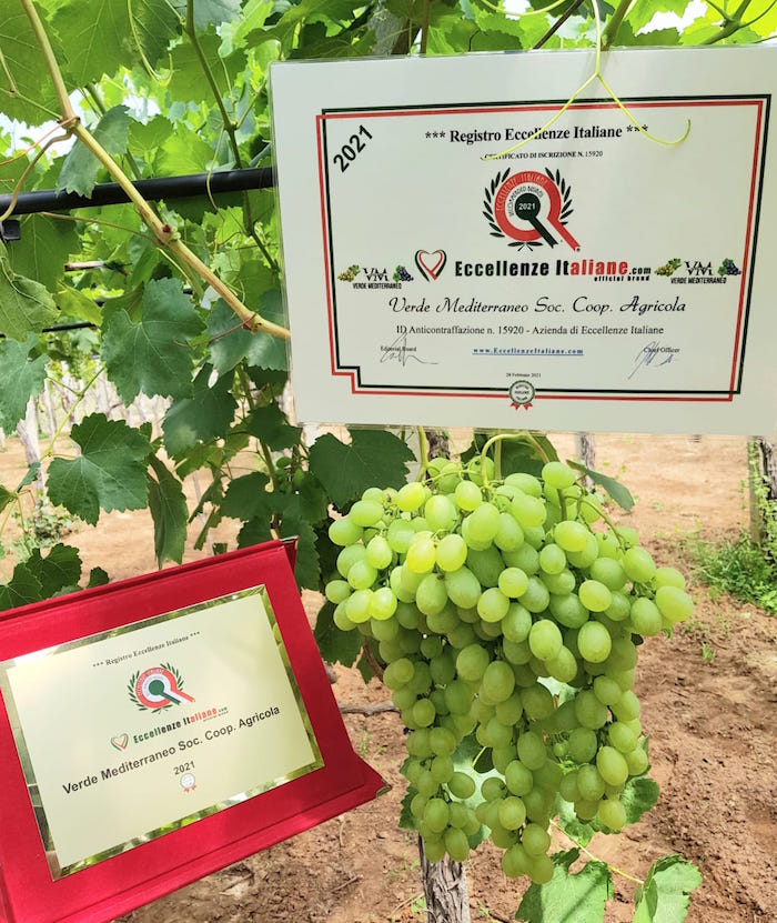 Sono due le novità rilevanti di quest'anno per la società cooperativa agricola Verde Mediterraneo: l'iscrizione nel registro delle eccellenze italiane e la Gran Bretagna, dove Giudice commercializzerà per la prima volta la propria uva: “Teniamo a sostenere il made in Italy – conclude – Per tale motivo rispettiamo tutti i parametri riguardanti i residui chimici e analizziamo in laboratorio le nostre uve ancor prima della raccolta, al fine di garantire al consumatore un prodotto d'eccellenza. Siamo orgogliosi di essere riconosciuti come eccellenza italiana (Id contraffazione 15920), sui mercati c'è troppo prodotto di cui non si conosce la provenienza”.