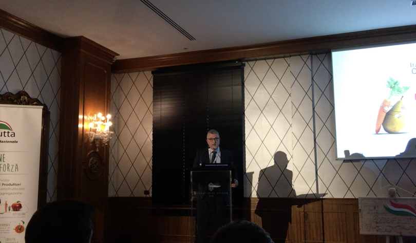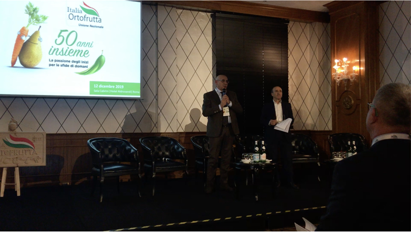 Un video che ha voluto rappresentare anche lo spirito che anima un gruppo di realtà che rappresenta una fetta molto importante del tessuto imprenditoriale ortofrutticolo italiano con un fatturato di 2,1 miliardi di euro. È stato Gianni Petrocchi – accompagnato sul palco da presidente Gennaro Velardo – oggi presidente vicario, una delle memorie storiche dell’Unione, essendovi entrato a far parte dalla metà degli anni ’80, a illustrare con excursus ricco di testimonianze video, le tappe che hanno portato Italia Ortofrutta fino ai giorni nostri. Un percorso. Dall’allora UIAPOA – “sigla misteriosa e nome impronunciabile” ha commentato Petrocchi – fino all’attuale Italia Ortofrutta, sono stati molti i passaggi che hanno portato le OP a diventare strumento, fortemente incentivato dalla Comunità europea, per fare sistema e aggregazione.