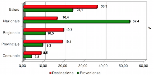 A livello nazionale la maggior parte viene indirizzata verso il nord Italia, precisamente Trentino Alto Adige (36%), Lombardia (24%) ed Emilia Romagna (19%).