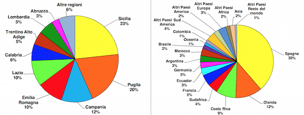 Quanto all'import, come già registrato negli anni scorsi, il 60% delle importazioni – il che significa 120mila tonnellate di prodotto – provengono dall’Unione europea: l’82% da Spagna e Paesi Bassi, i quali effettuano il 50% delle spedizioni di frutta verso i mercati veneti.