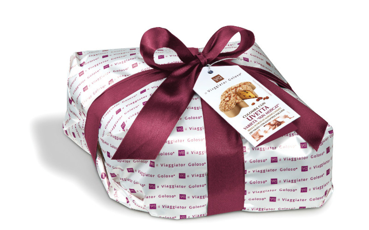 Per stupire parenti e amici con un regalo gourmet, anche quest’anno il Viaggiator Goloso propone un’elegante strenna pasquale composta da una colomba classica e da una bottiglia di Moscato d’Asti D.O.C.G. custoditi in una sola confezione. Prezzo € 11,99.