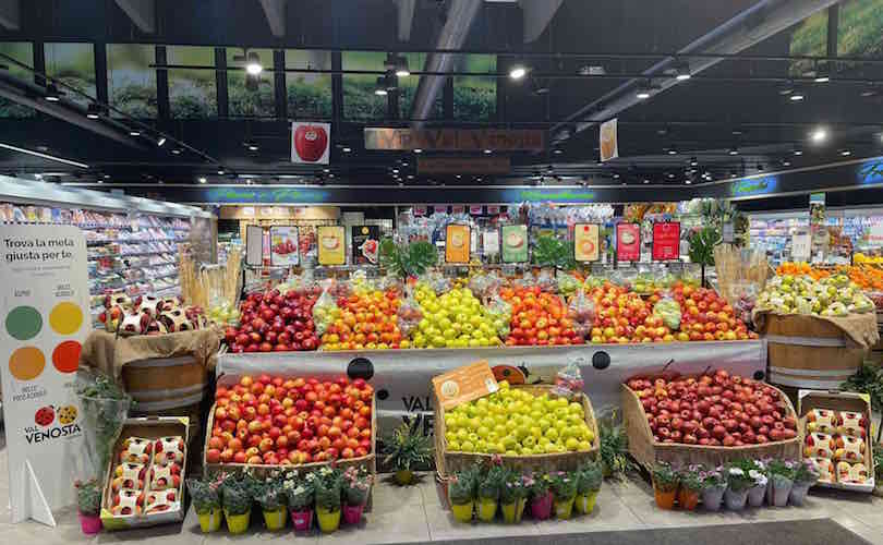 A distanza di un anno da quella esperienza, infatti, i frutti sono ben visibili negli allestimenti dei reparti ortofrutta del gruppo distributivo. Ben organizzati, freschi, accattivanti, ad alto contenuto informativo, con tutte le carte in regola per attirare i consumatori e motivarli all’acquisto delle mele. Può sembrare scontato, ma non lo è: la collaborazione con le singole catene è fondamentale affinché i retailer possano comunicare al meglio le peculiarità delle diverse varietà di mele e renderle più appealing.