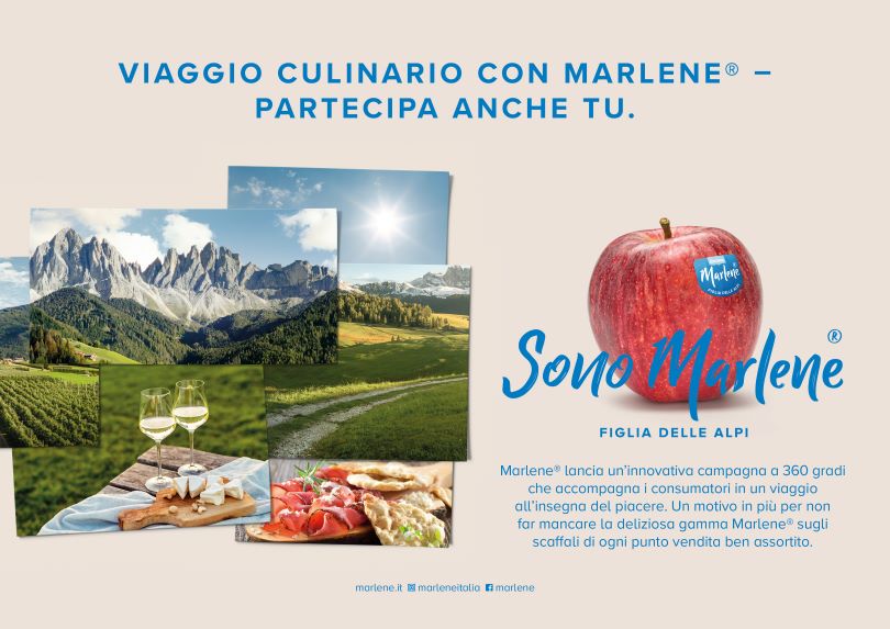 Una delle prime campagne a partire sarà quella di Marlene®, la Figlia delle Alpi, che amplierà il concetto della ruota degli aromi, dell’origine e del gusto per creare valore aggiunto intorno alle varietà più classiche. A fine agosto prende anche il via la commercializzazione di SweeTango™, proposta come la “mela che ti porta il sapore dell’estate”.