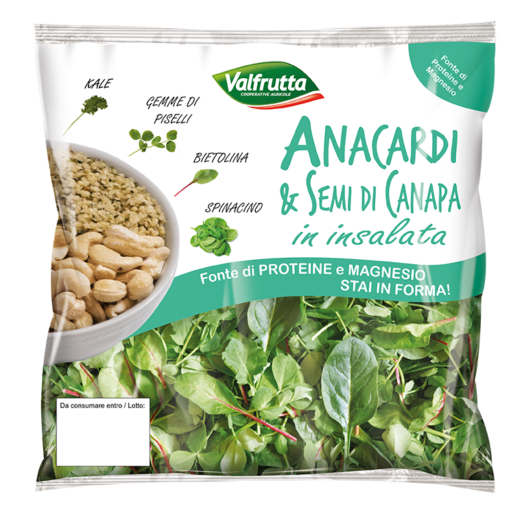 Con queste premesse, ma non solo, venerdì 11 marzo è stata presentata a Milano l’ultima referenza della Linea Benessere prodotta dal Consorzio Cultiva e sviluppata in esclusiva per Valfrutta Fresco che si occupa della commercializzazione e distribuzione. Ai 5 prodotti, lanciati l’anno scorso, infatti, se ne aggiunge ora un sesto: Anacardi e Semi di Canapa in insalata. La ricetta, di quest’ultima referenza così come delle precedenti, è stata studiata, dopo lunghi test e interviste direttamente con i consumatori, dallo chef Dario Ferri, che ha composto i vari mix selezionando varie ed originali tipologie di insalate con “arricchitori” di più tipologie.