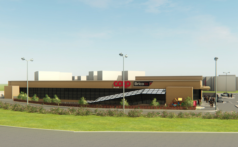Nuovo punto vendita e riqualificazione di un’area strategica per la città. Impianto fotovoltaico, parcheggio con colonnine per auto elettriche, illuminazione a Led